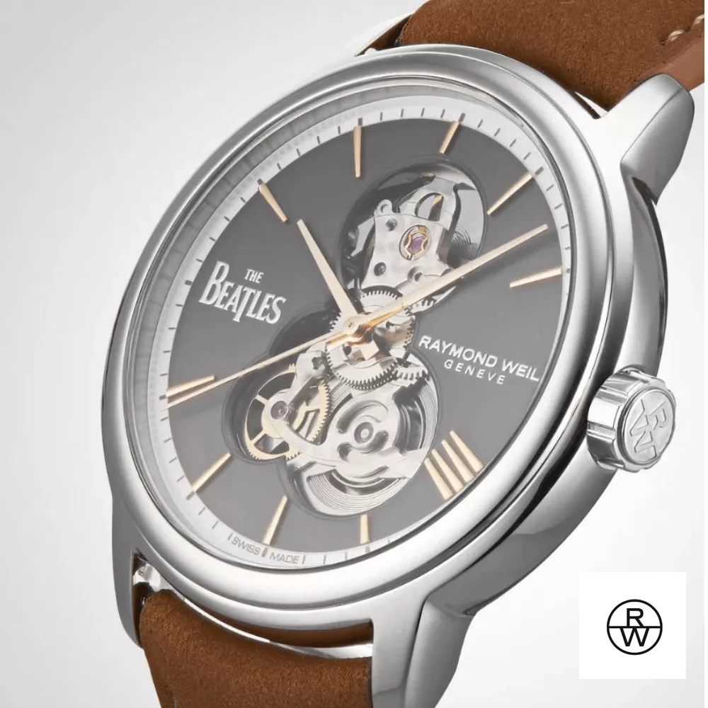 Nằm trong vỏ thép không gỉ 40mm. Phiên bản giới hạn của The Beatles thể hiện mong muốn quay trở lại cội nguồn âm nhạc của RAYMOND WEIL, lấy cảm hứng từ album cuối cùng của ban nhạc huyền thoại vào năm 1970. Lần đầu tiên, phiên bản giới hạn của nhạc trưởng được trang trí bằng bộ chuyển động khung xương, được tiết lộ bởi một hình tượng tinh tế của Vương quốc Anh. . Để phù hợp với nhạc trưởng “Trung sĩ Pepper” trước đây. The Beatles, dây đeo hiệu ứng nubuck màu nâu nhạt tự hào có chất liệu thuần chay.. Một chiếc đồng hồ tự lên dây có khả năng dự trữ năng lượng trong 38 giờ, được tạo ra để kỷ niệm Vương quốc Anh và ban nhạc huyền thoại của nước này. Sự bổ sung mới này cho RAYMOND WEIL Music Icons Limited bộ sưu tập phiên bản, nhạc trưởng “Let It Be” The Beatles, tượng trưng cho sự trường tồn theo thời gian của một ban nhạc. Với logo chính thức của The Beatles ở vị trí 9 giờ cân bằng với logo RAYMOND WEIL ở vị trí 3 giờ và logo chính thức của The Beatles được tiết lộ thêm trên vỏ sau.